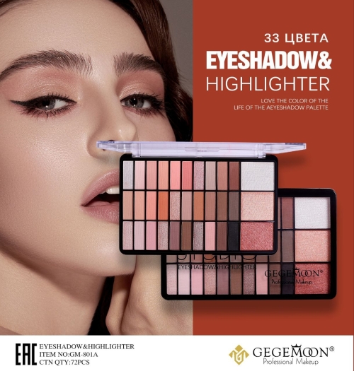 Тени для век палетка для глаз нюдовые, хайлайтер.